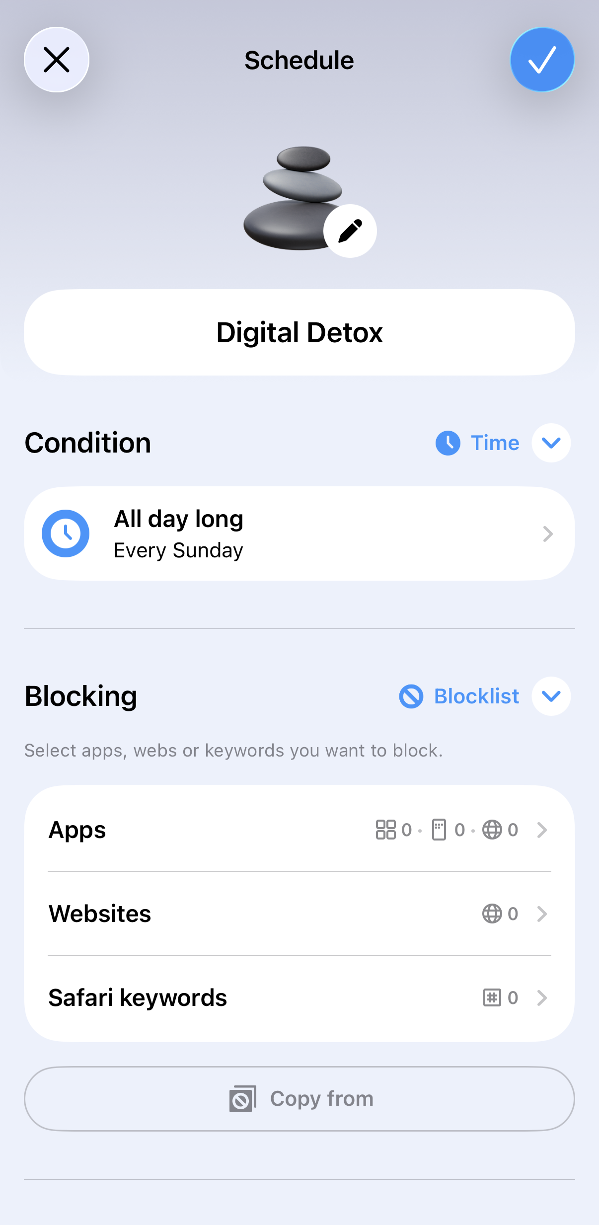Create schedules like Mindful Morning, Study Time, or Digital Detox and let AppBlock handle distractions for you. For example, a Mindful Morning schedule can prevent access to Instagram or TikTok until 10:00 a.m., while Study Time blocks entertainment and shopping apps so you can focus.